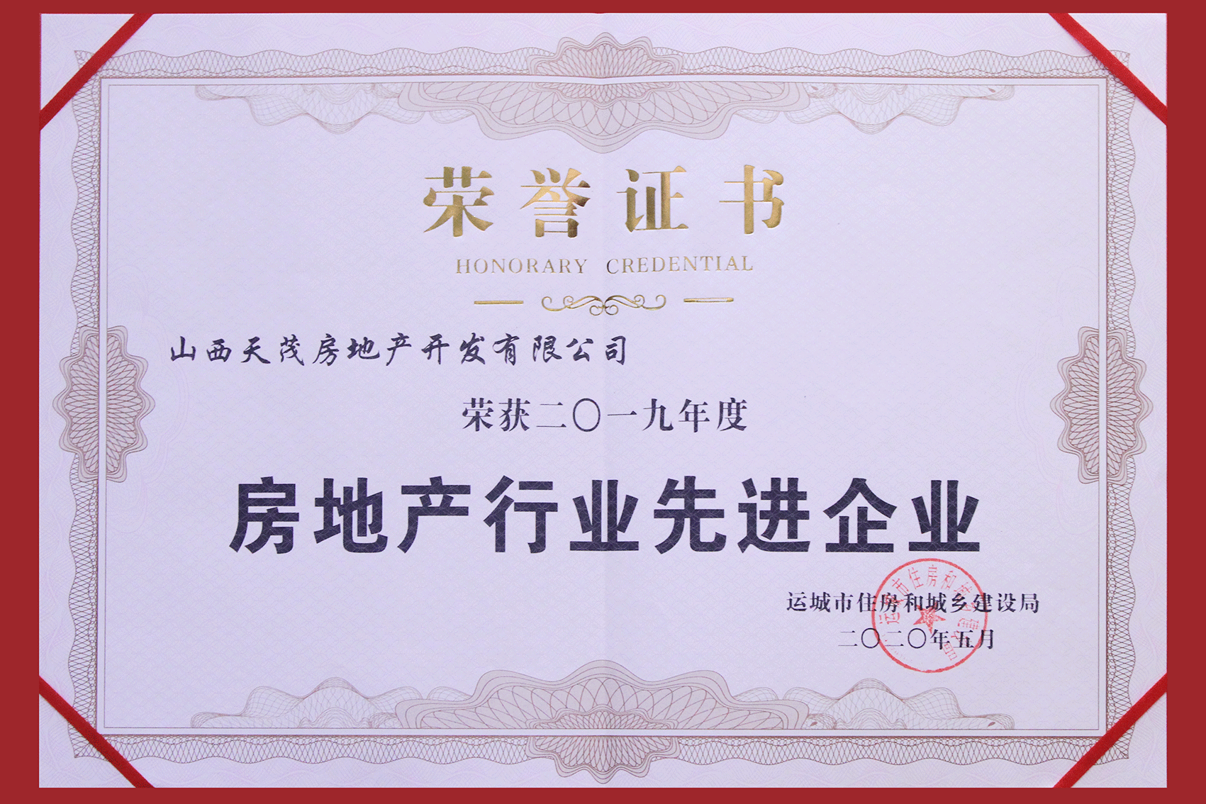 ▲山西天茂房地產開發有限公司榮獲“2019年度房地產行業先進企業”
