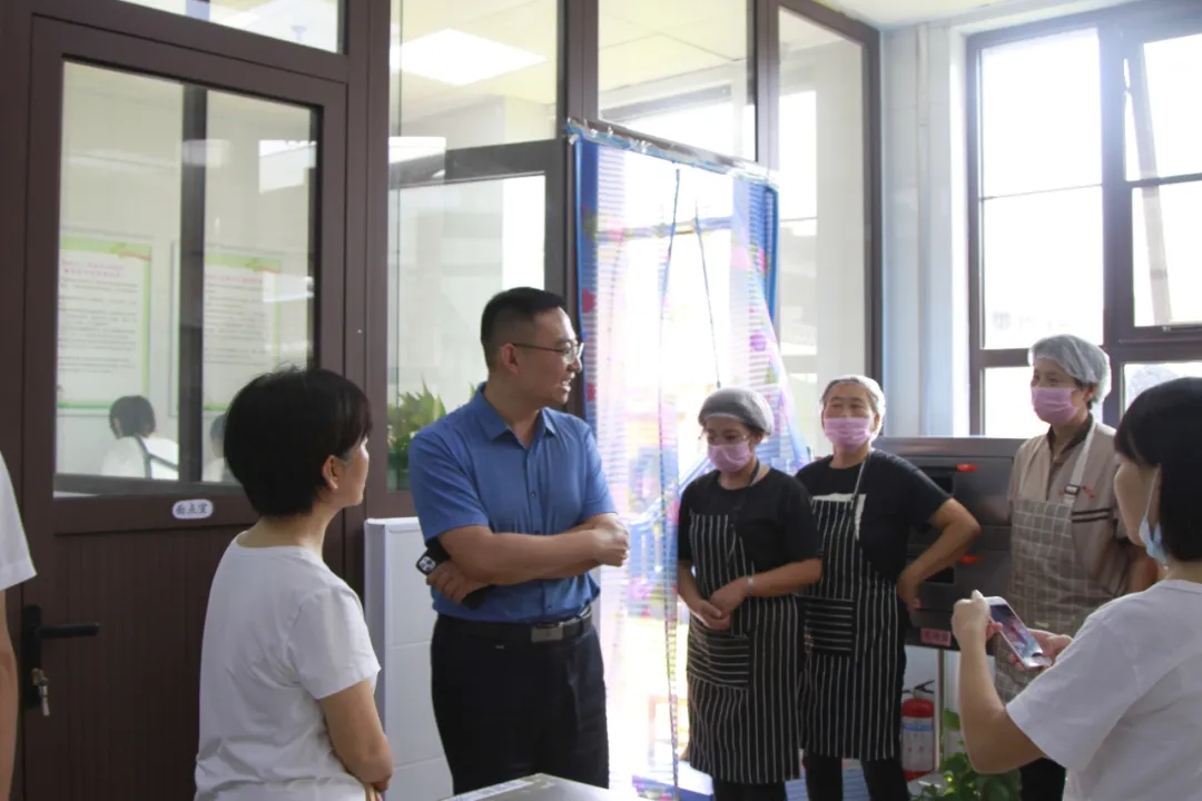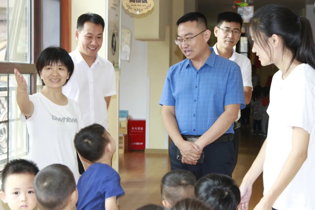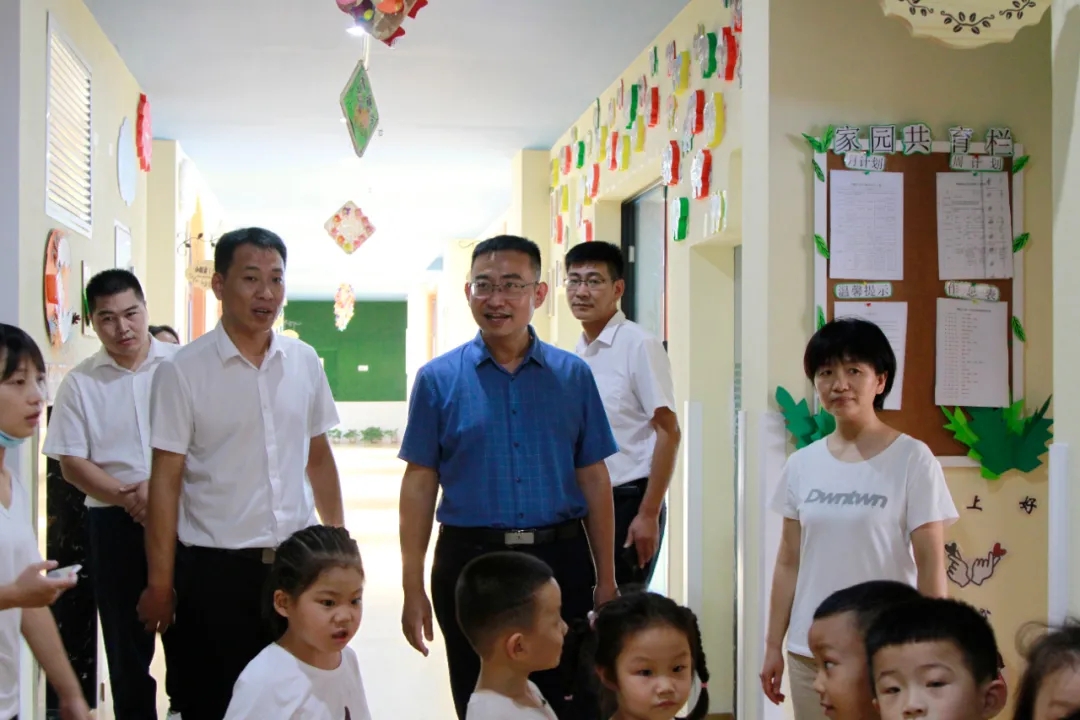 當天,劉忠森在幼兒園程園長陪同下,一行參觀了幼兒園的環境,實地察看了各項教學配套設施,了解了孩子的飲食與教育教學活動,并與教師親切交談,慰問了老師的工作、生活情況,對她們在平凡崗位上的辛勤耕耘、默默付出表示感謝。