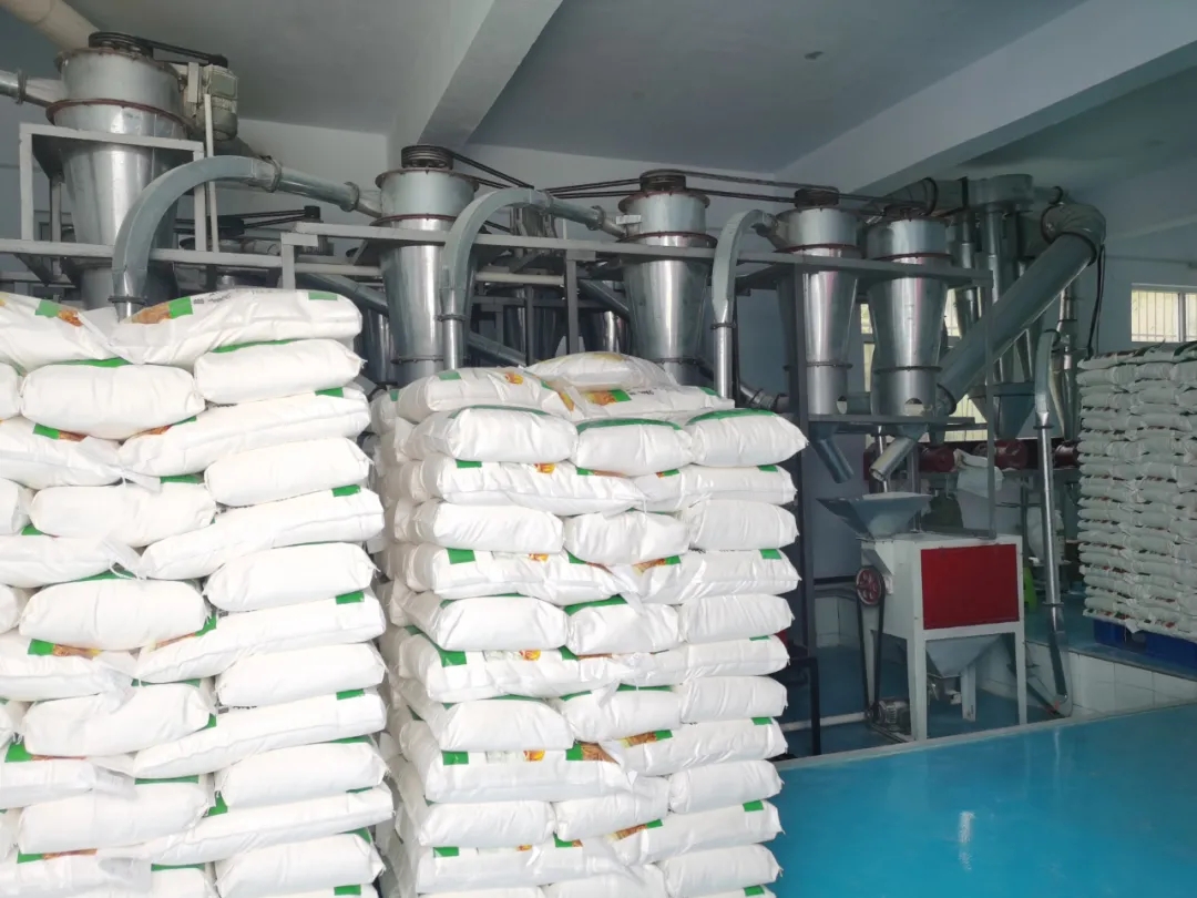 在駐村第一書記王靜的帶領下,西建集團天茂房產工作人員參觀了面粉廠的生產間,并深入了解了毛家山面粉的制作工藝及流程。
