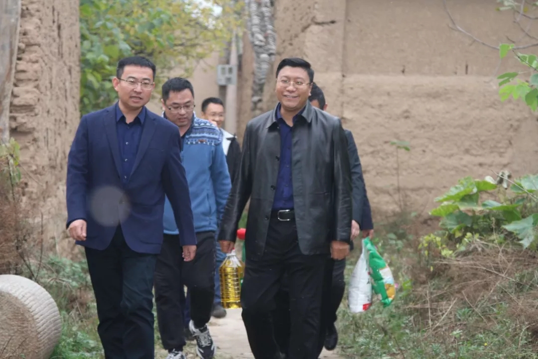 2020年11月6日,西建集團天茂公司總經理劉忠森與共青團運城市委副書記孫鵬來到平陸縣南侯村,對該村部分貧困戶進行走訪慰問,為每戶貧困戶送去米、面、油等慰問品,送上關懷和問候。