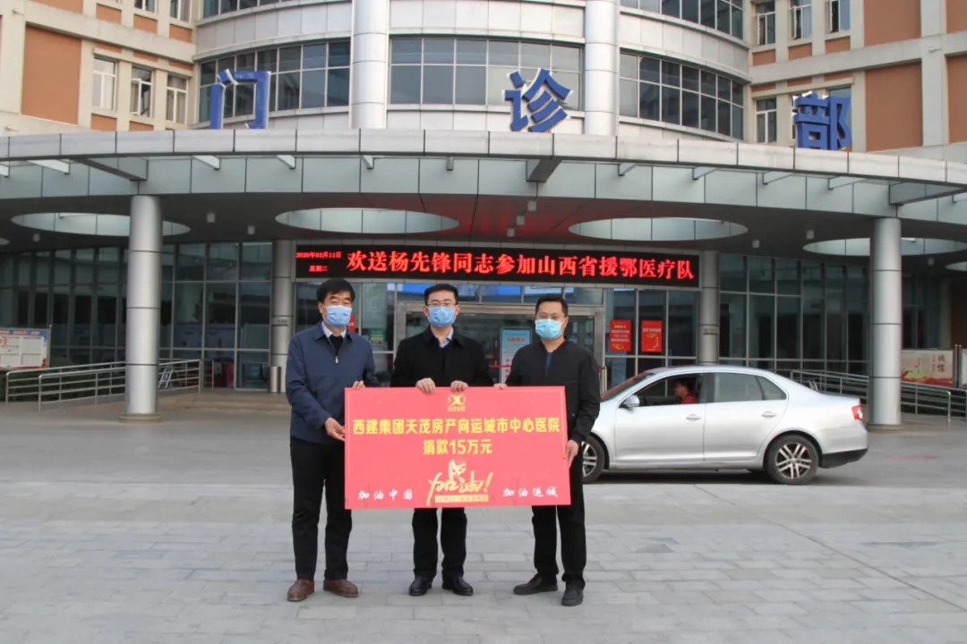 2020年2月13日,西建集團在抗擊新冠肺炎戰疫中減免房租、捐物捐款涉超500萬元。2020年9月16日,西建集團天茂房產分公司工作人員與駐村第一書記王靜,一起前往平陸縣圣人澗鎮毛家山村進行“以購代捐 消費扶貧”活動,出資2萬余元采購村中面粉廠6000余斤面粉,助力該村貧困群眾脫貧增收致富。