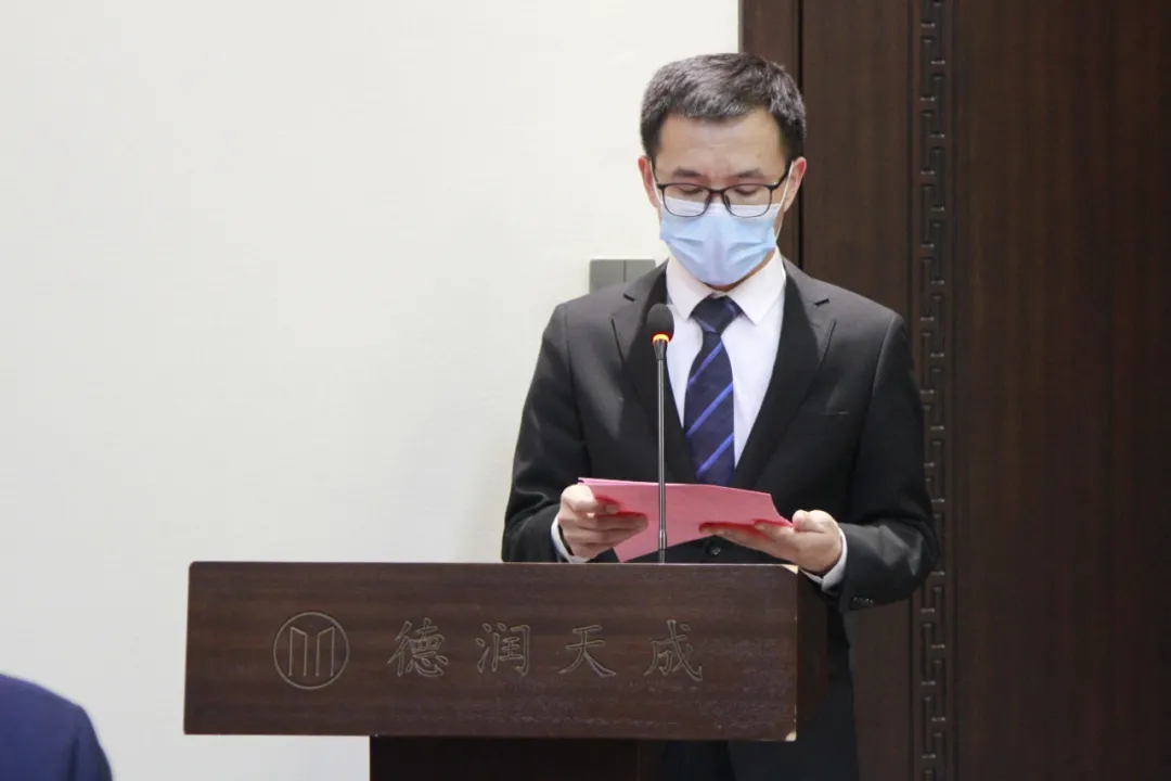 ▲天茂城分公司財務經理張普祥宣讀宣布2020年度分公司評選先進個人和先進集體