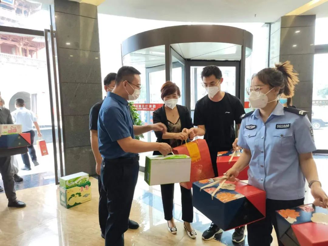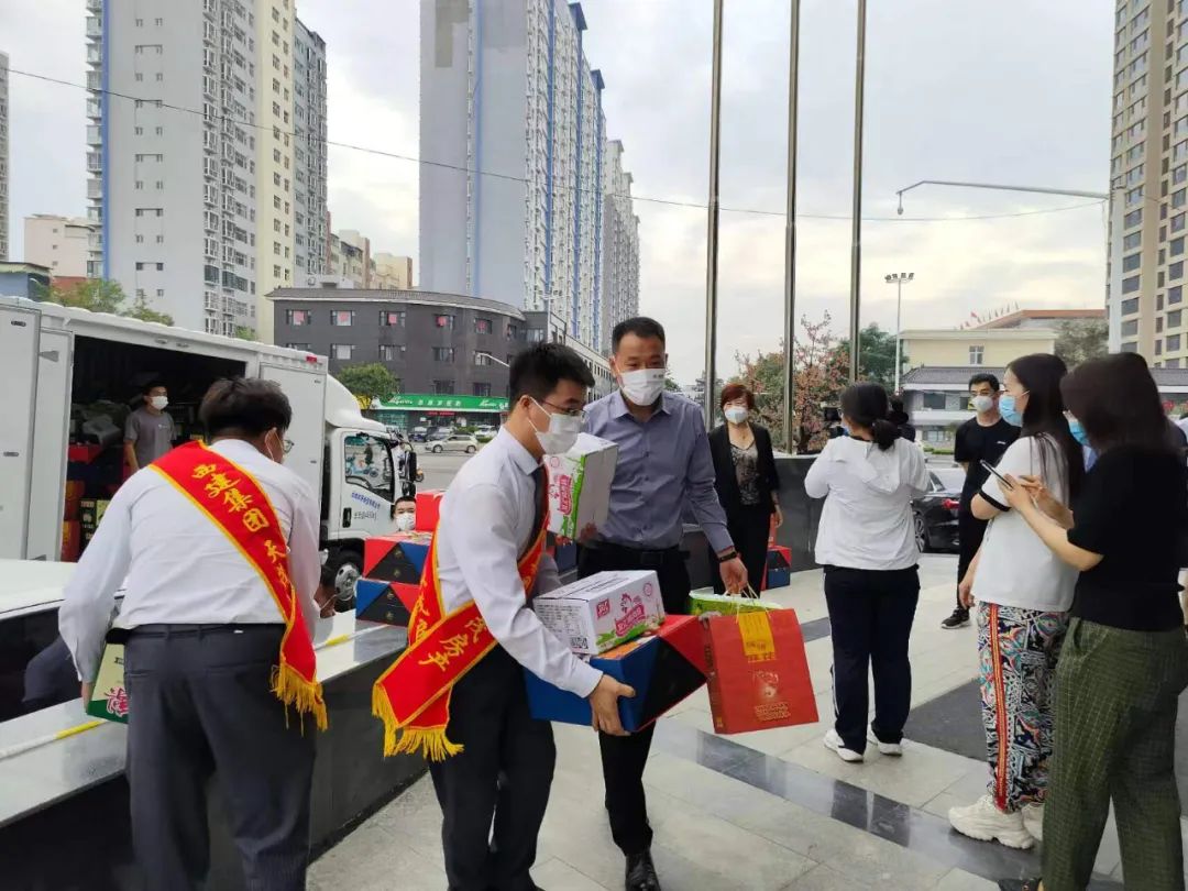 9月8日,在中秋佳節來臨之際,鹽湖區副區長霍國榮,鹽湖區政協副主席馬紅琴及西建集團天茂房產總經理劉忠森,深入11個隔離酒店,為因疫情防控無法歸家團圓的工作人員送去價值近5萬元的防疫慰問品,在闔家團圓的時刻,為他們送上最真摯的溫情。