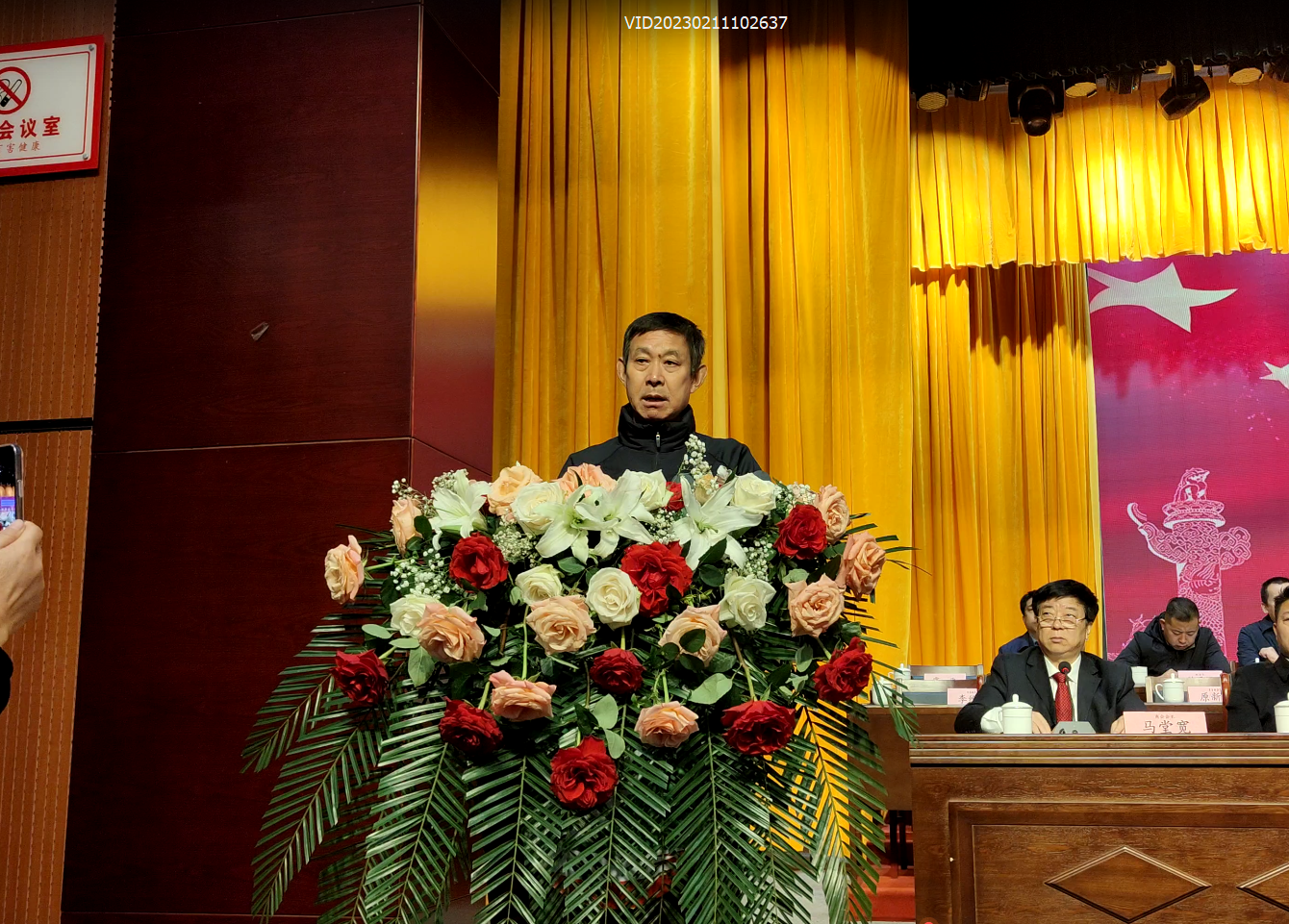 在嘹亮的國歌聲中,會議正式開始。大會回顧總結了“三會”過去四年來的工作,運城市非公有制企業家協會原會長陳寶忠做工作報告。