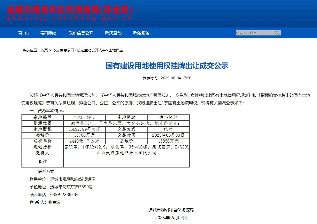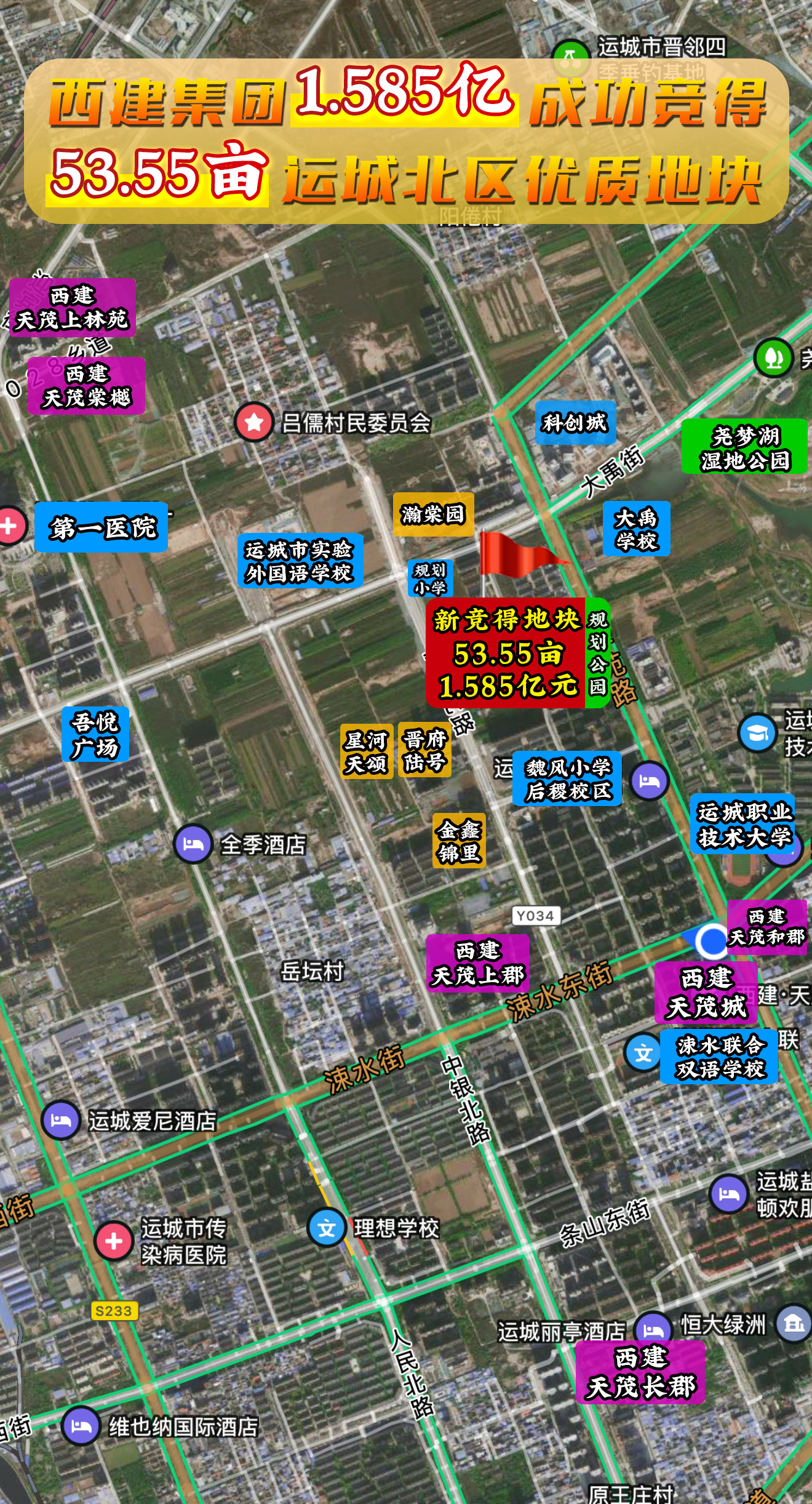 深耕運城 再拓熱土丨西建集團1.585億成功競得運城北區優質地塊